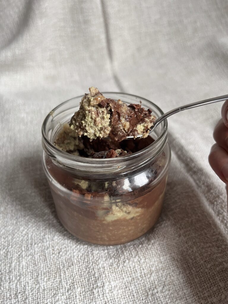 „Dubai” csokis-pisztáciás zabkása Nem szeretek felülni az ilyen trendekre, ugyanakkor miért ne lehetne ennek az őrületnek a tápláló és minőségi verzióját elkészíteni? Ráadásul zabkásával kombinálva, 100%-os pisztáciavajjal – nem ismerve