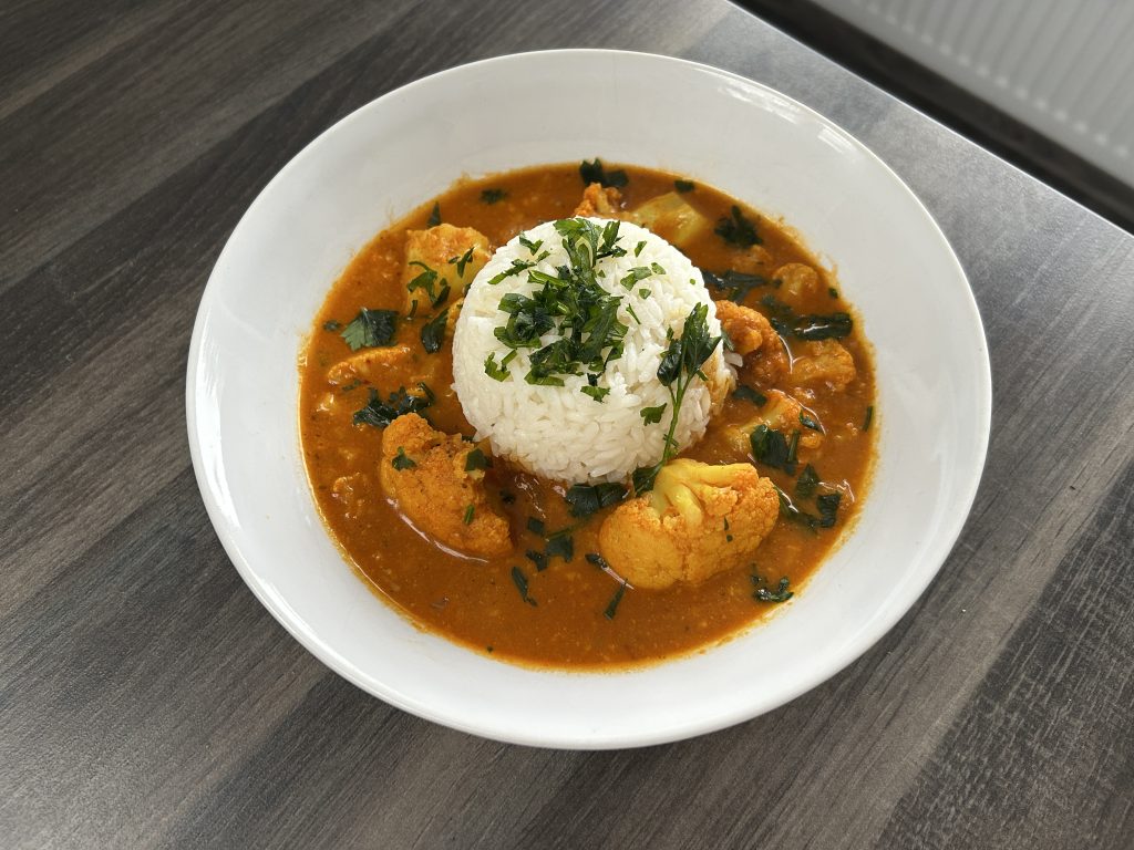 Indiai karfiol ragu Mostanában nagyon odavagyok ezekért a ragus, egytál jellegű meleg ételekért – valahogy megnyugtatóak, jól esnek, és nem kell száz dolgot külön főzni. Ez a karfiolragu ráadásul teljesen