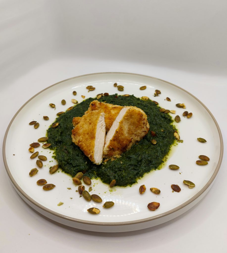 Grillezett csirkemell, fokhagymás spenóttal Megint egy összedobós fogás, ráadásul indul a spenótszezon is – de semmi baj nincs a zacskós verzióval. A csirkemell ropogós kérget kap a zabliszttől. Ez a