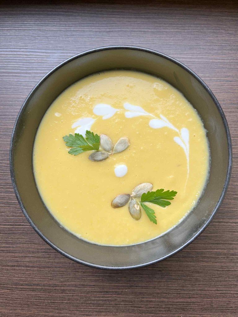 Kukoricakrémleves Ez az egyik legegyszerűbb, mégis nagyon finom leves – édes, krémes és fűszeres is egyszerre. Teljes idő20 min Tálalásméret2 GluténmentesIgen Tehéntej-mentesIgen Hozzávalók 1 kis fej hagyma 3 gerezd fokhagyma