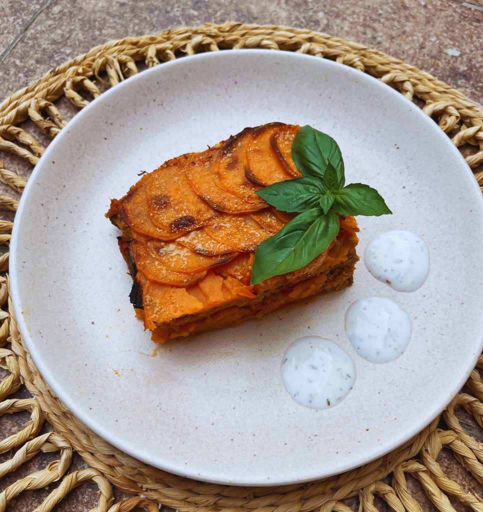 Édesburgonya “lasagne” Egy könnyedebb, színesebb verziója a klasszikus lasagnénak – a tészta helyett édesburgonya (vagy sima burgonya) rétegekkel. Egyszerű alapanyagok, látványos és laktató végeredmény, és valóságos rostbomba.:) Teljes idő1 hr