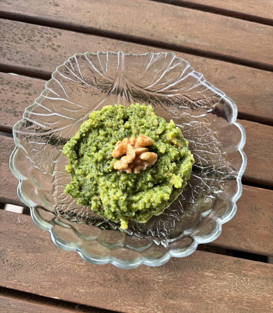 Diós-petrezselymes pesto Egy egyszerű, pénztárcakímélő ötlet, és őszintén… nem fogod érezni a különbséget a klasszikus bazsalikomos verzióhoz képest. A petrezselyem egy alulértékelt superfood, a dió tápanyagbomba, az extra szűz olívaolaj