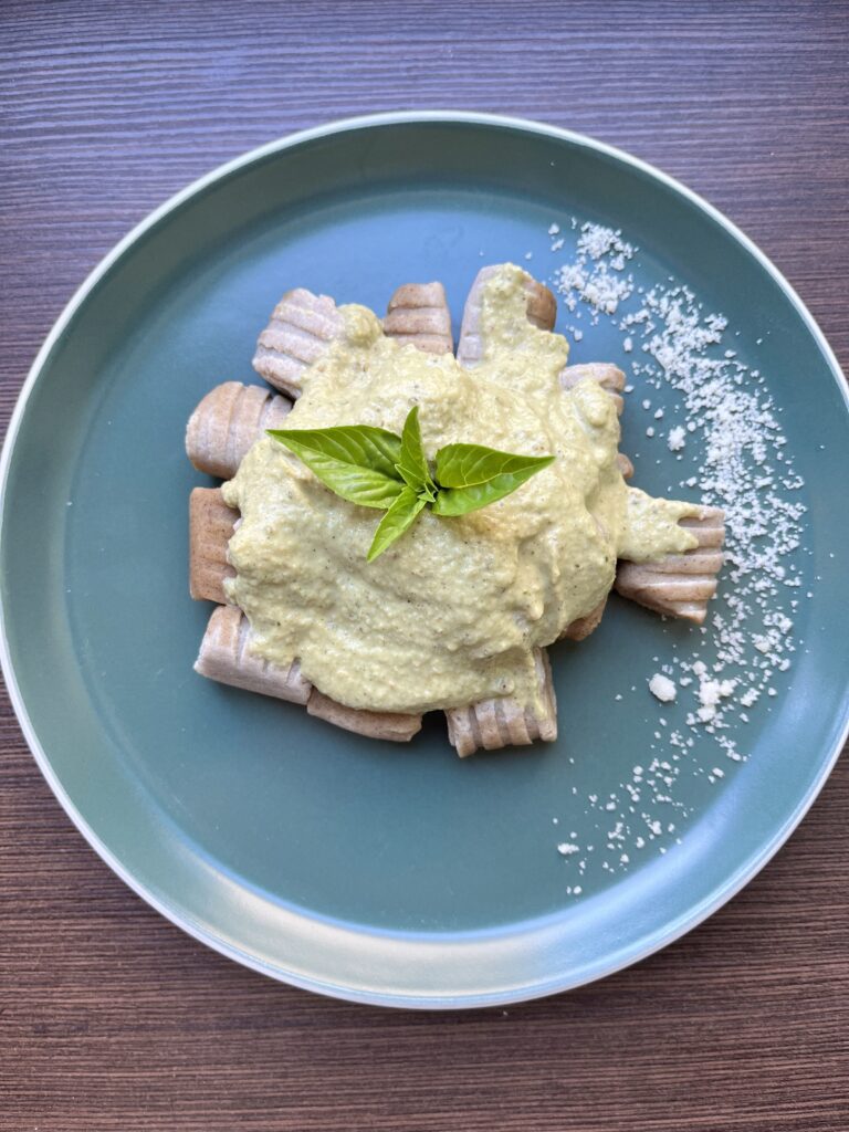 Tofu-gnocchi hamis pestóval Egy könnyű, fehérjedúsabb változat, ami kicsit más, mint a klasszikus gnocchi – a tofu miatt puhább, lágyabb állagú, és nagyon jól passzol hozzá ez a cukkini-alapú „pesto”.