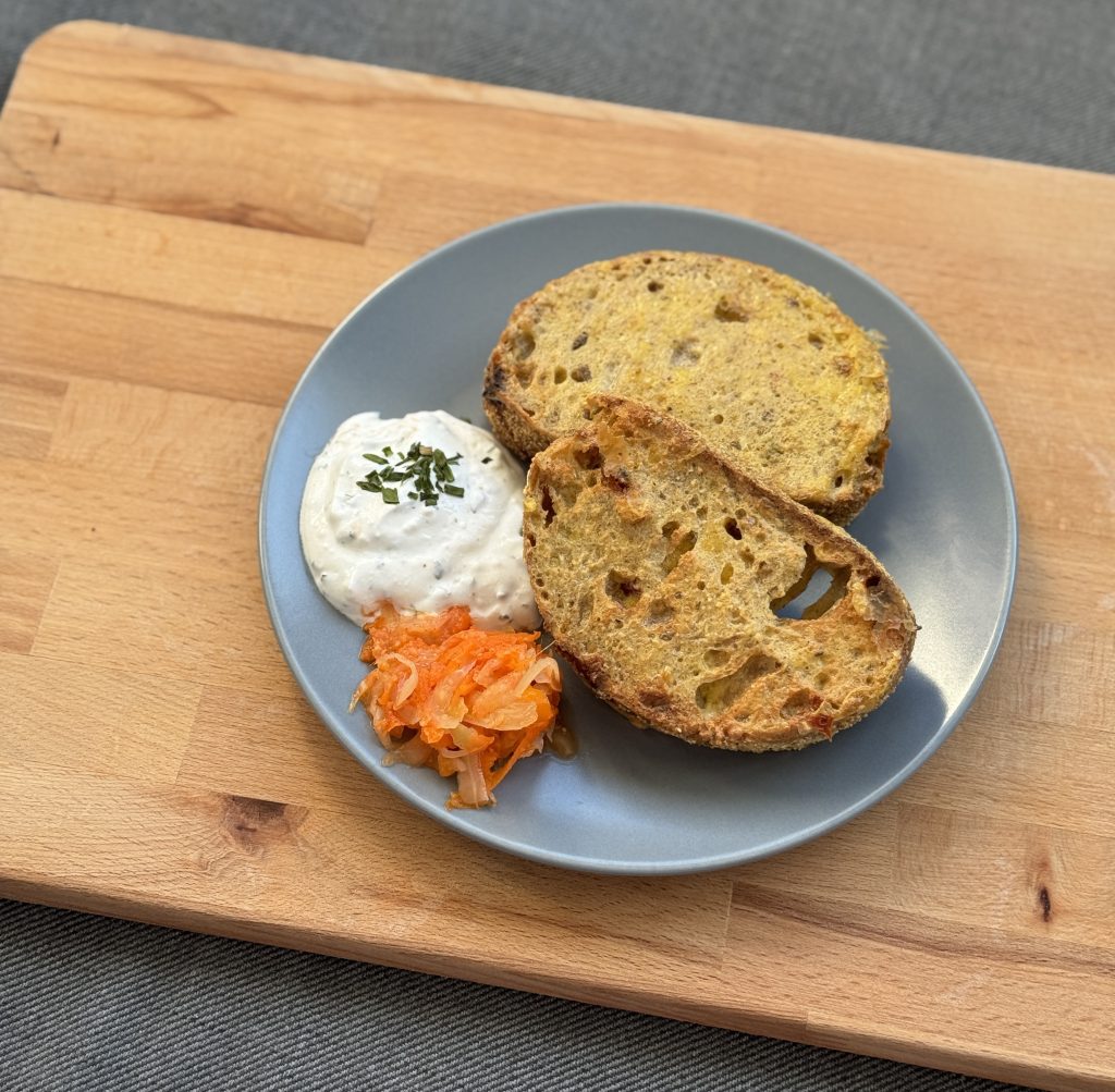 Airfryerben sült bundáskenyér Ezt nagyon fogjátok szeretni: a zsírban ‘tocsogós’ bundáskenyér helyett egy optimálisabb verzió airyerben – ami szépen aranybarnára pirítja, belül pedig puha marad. A fokhagymás tejfölmártogató szuper frissítő